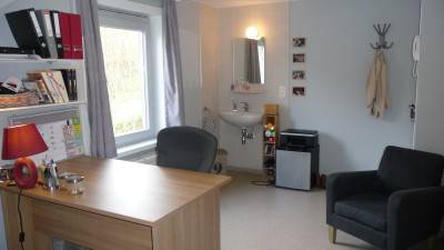 Gemeubelde driesterren studio (kleerkast, boekenkast, tafel met laden, bureautafel, stoelen, bed) met alle comfort voor 2 personen. Slaapka...