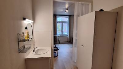 De ruime kamer is gelegen op het gelijkvloers op de hoek van de St -Rochuslaan en de Wagenmakersstraat. Ruime vernieuwde kamers, moderne me...