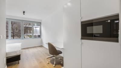 Volledig vernieuwde studentenkamer (15,41 m²) op het gelijkvloers van een hedendaagse studentenresidentie aan de Diestsesteenweg in Kessel-Lo. Op fietsafstand van het centrum van Leuven, KU Leuven-faculteiten, station Leuven, UZ Gasthuisberg en de nieuwe campus- en stadsparkontwikkeling.