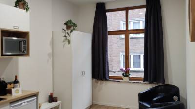 Verzorgde bemeubelde studio. Gelegen in tussen Gasthuisberg - LUCA en het centrum. Vloerbekleding in laminaatparket. Keukenhoek met vitro...