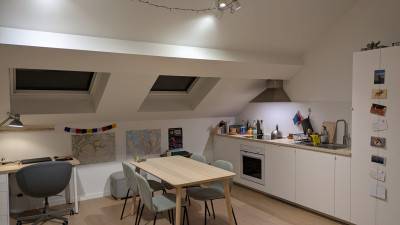 Spacious quiet duplex studio for 1 person. Ground floor featuring a study and living area, kitchen, entrance hall, shower. Mezzanine floor...