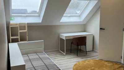 Deze lichtrijke kamer heeft 3 ramen met rolluiken en een privé douche. Je deelt de ruime keuken slechts met 3 andere studenten. Je kan je...